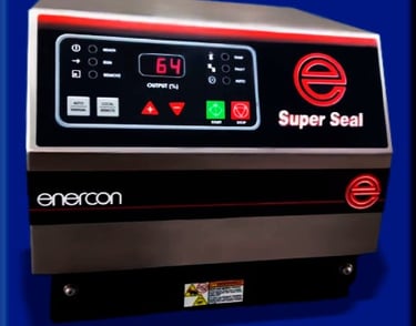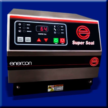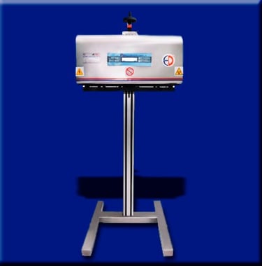 Equipos de sellado por inducción compactos con control por microprocesador, cabezales de sellado para cada tipo de tapa, con velocidades de sellado de 0 a 10 metros por minuto, pueden trabajar con sistemas de inspección de tapas, sensores de movimiento y detección de liner, sistemas de expulsión de productos rechazados, etc.